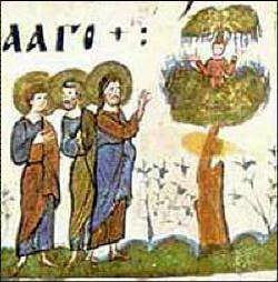 Ο άγιος Ζακχαίος, όπως είναι γνωστόν από την Ευαγγελική περικοπή που διαβάζεται κάθε χρόνο στους Ιερούς Ναούς και είναι ειλημμένη από το κατά Λουκάν Ευαγγέλιον (ιθ 1-10), ήταν αρχιτελώνης και πλούσιος και ζητούσε να δη τον Χριστό. Όταν, λοιπόν, άκουσε ότι θα περάση από την Ιεριχώ ανέβηκε σε μια μουριά, επειδή ήταν μικρού σωματικού αναστήματος, για να τον δη. Ο Χριστός τον είδε και του είπε: «κατέβα γρήγορα, διότι πρέπει να μείνω στο σπίτι σου σήμερα». Μάλιστα, τον προσφώνησε με το όνομά του παρ’ όλο που ως άνθρωπος δεν τον γνώριζε και δεν τον είχε δει ποτέ. Ο Ζακχαίος κατέβηκε αμέσως και τον υποδέχθηκε με χαρά, ενώ οι παρόντες άρχισαν να γκρινιάζουν και να παραπονούνται επειδή πήγε να μείνη στο σπίτι ενός αμαρτωλού, ωσάν αυτοί να ήσαν αναμάρτητοι. Αλλά ο Χριστός πήγε στο σπίτι του Ζακχαίου αφ’ ενός μεν γιατί επισκέπτεται, χωρίς διακρίσεις, όλους εκείνους οι οποίοι Τον θέλουν και Τον αναζητούν με πόθο, αφ’ ετέρου δε γιατί είδε την καρδιά του αρχιτελώνη να φλέγεται από την αληθινή μετάνοια και την επιθυμία για διόρθωση. Πράγματι ο Ζακχαίος έδειξε έμπρακτα την μετάνοιά του, αφού διεκήρυξε δημοσίως ότι την μισή περιουσία του την δίνει στους φτωχούς και σε εκείνον που τυχόν αδίκησε θα του το αποδώση στο τετραπλάσιο. Γι’ αυτό και αξιώθηκε να ακούση από το στόμα του Χριστού τον γλυκύτατον εκείνο λόγο, «ότι σήμερον σωτηρία τω οίκω τούτω εγένετο».