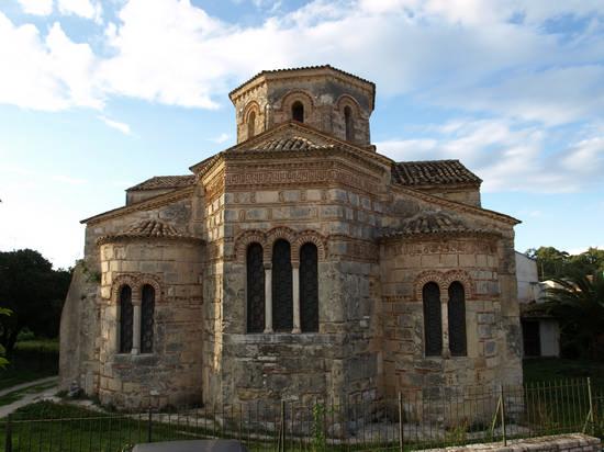 - Ο δικιόνιος σταυροειδής εγγεγραμμένος με οκτάπλευρο τρούλο ναός των Αγίων Ιάσονος και Σωσιπάτρου στην πόλη της Κέρκυρας .